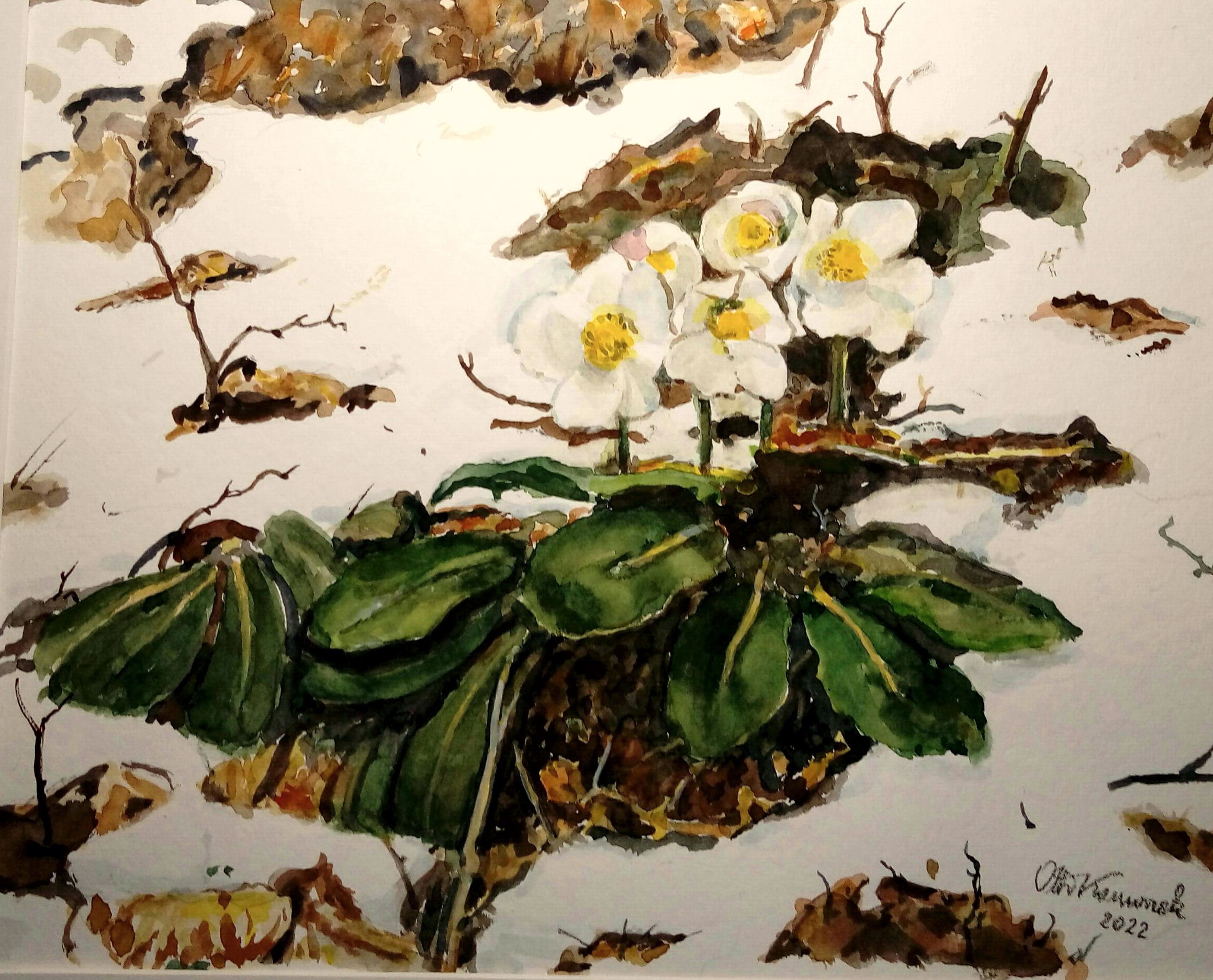 Schneerosen Aquarell 34 x 27