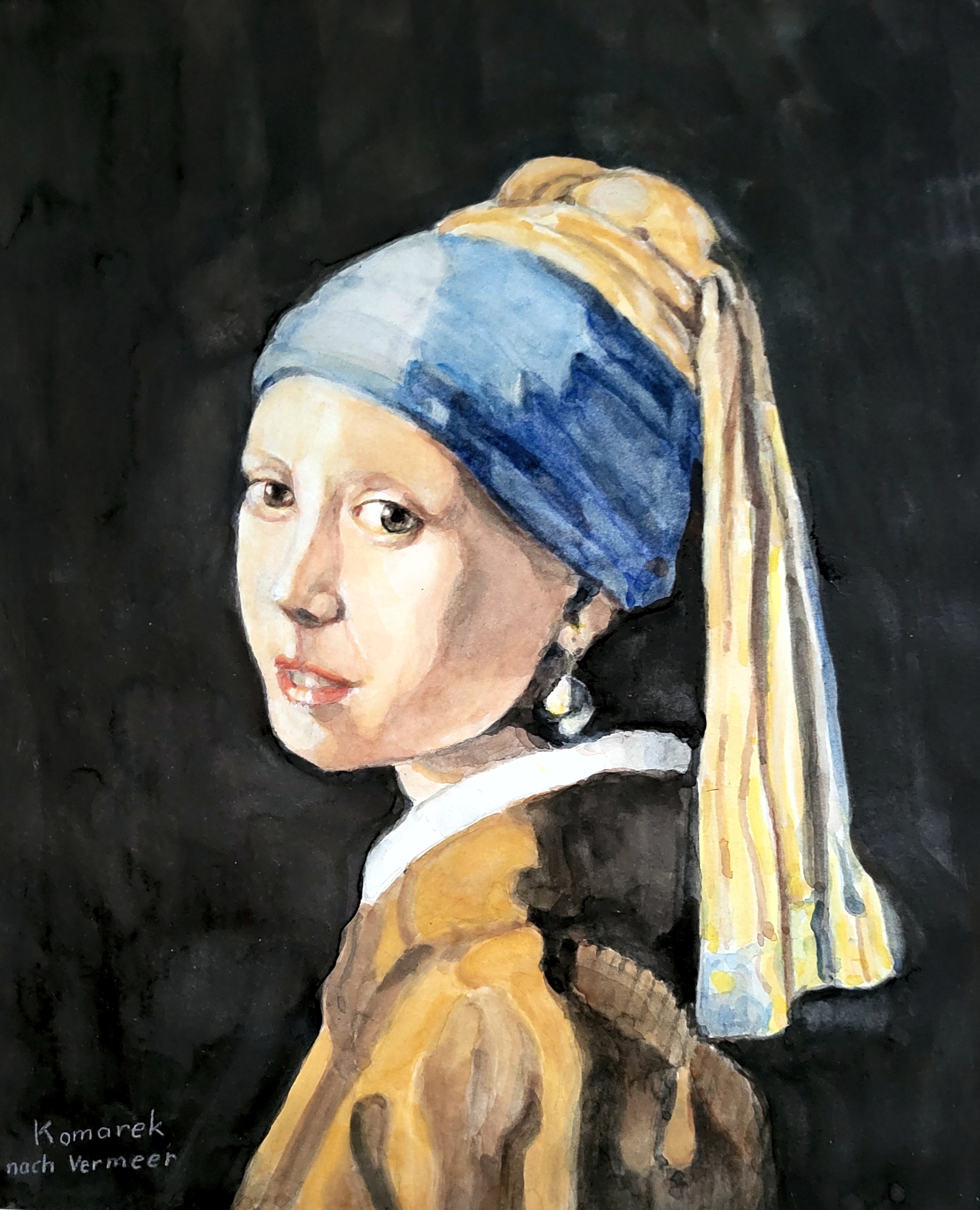 Das Mädchen mit dem Perlenohrgehänge nach Vermeer Aquarell 27 x 34