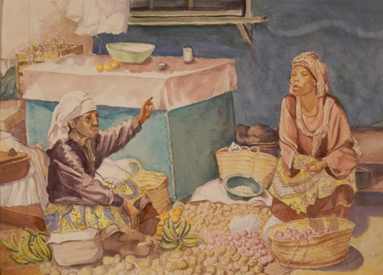 Marktszene Aquarell 48x34