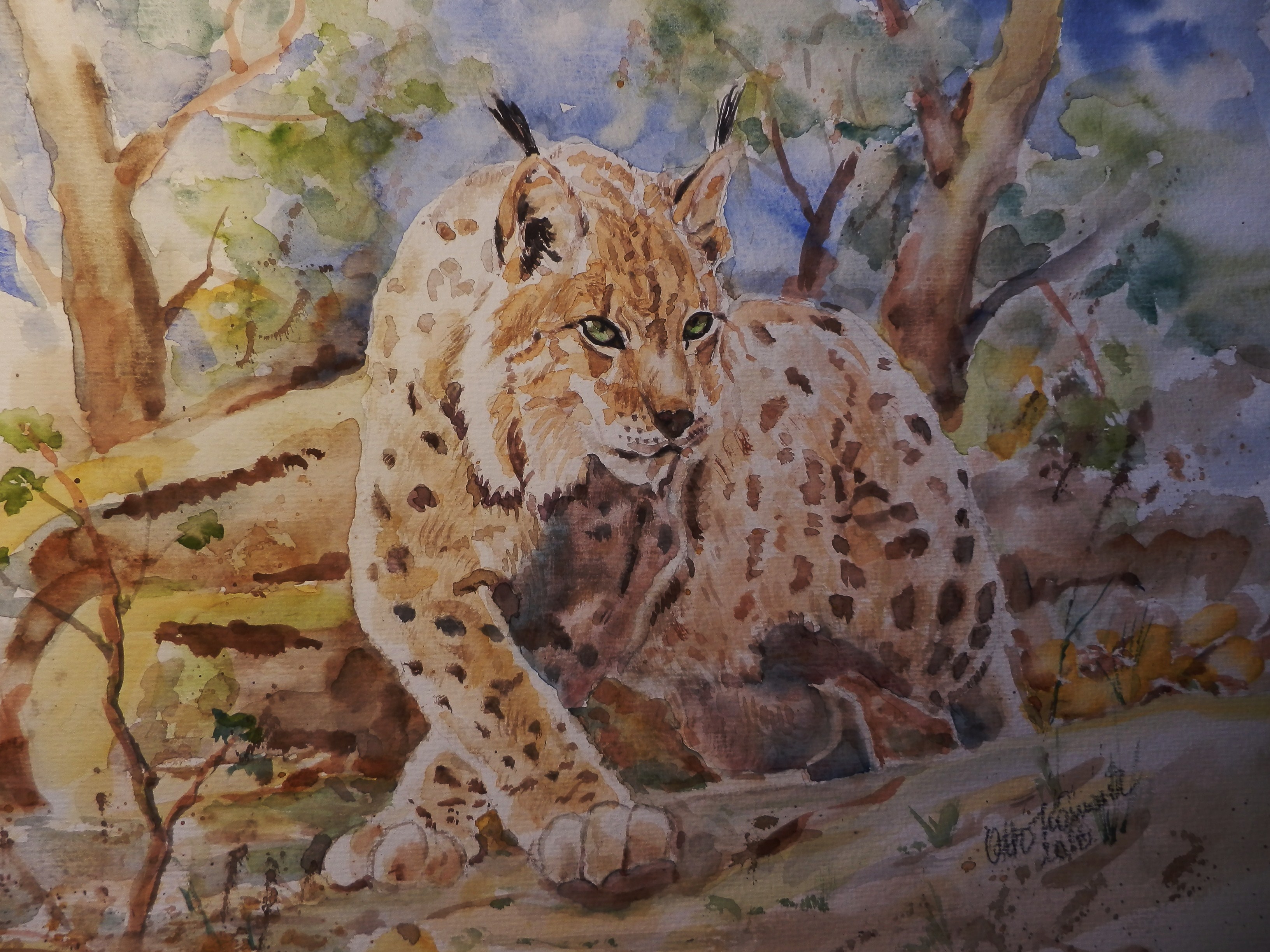 Luchs Aquarell 35 x 28