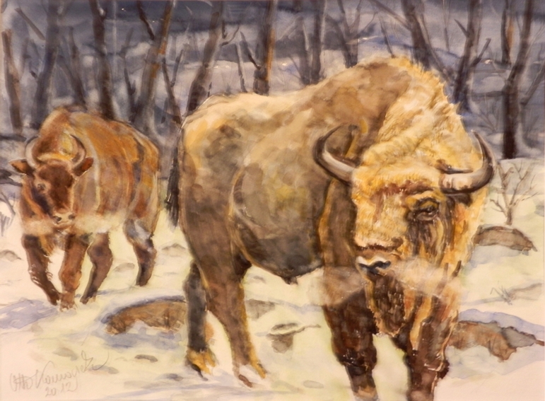 Wisent im Schnee Aquarell 29x39